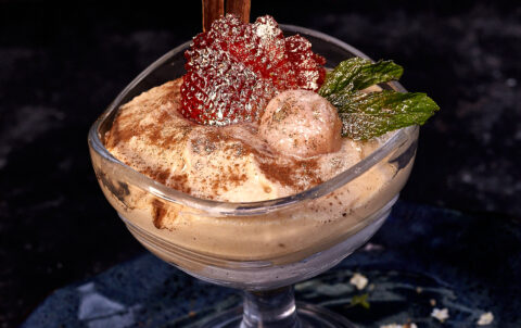 Clasico postre peruano, reducción de dulce de leche, merengue, fresas y galletas crocantes.